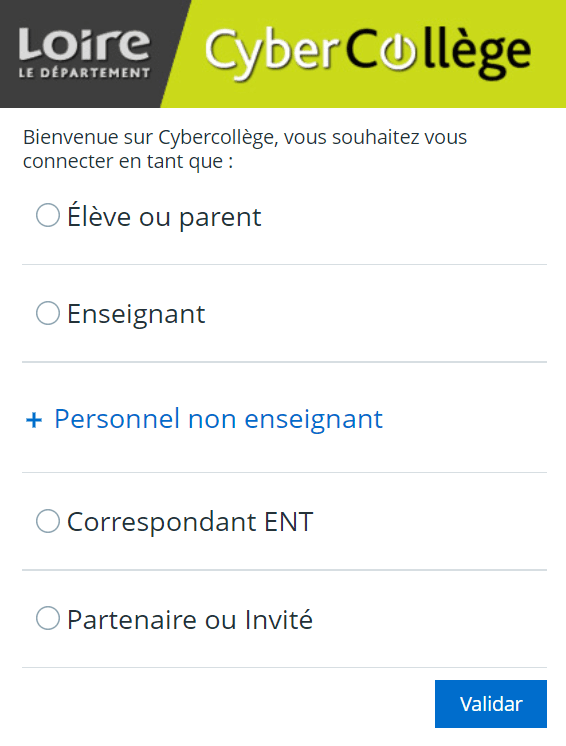 Pour accéder au cybercollege, des identifiants et des mots de passe destinés aux parents ainsi qu’aux élèves sont distribués durant la rentrée des classes. Par ailleurs, pour les nouveaux professeurs, les codes sont les identifiants académiques. C’est-à-dire, la première lettre de votre prénom, suivi de votre nom, si vous êtes doublons, ces derniers sont suivis de chiffre, enfin, un mot de passe. Si vous ne connaissez pas encore le mot de passe, demandez à votre secrétariat votre NUMEN, ainsi que du Guichet Unique pour votre login. Pour vous connecter :